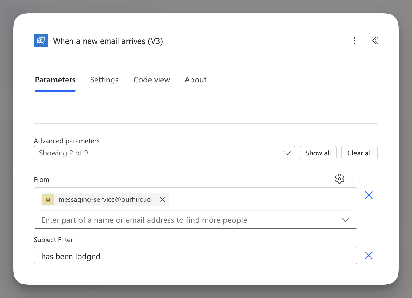 - Set the trigger to When a new email arrives (V3).