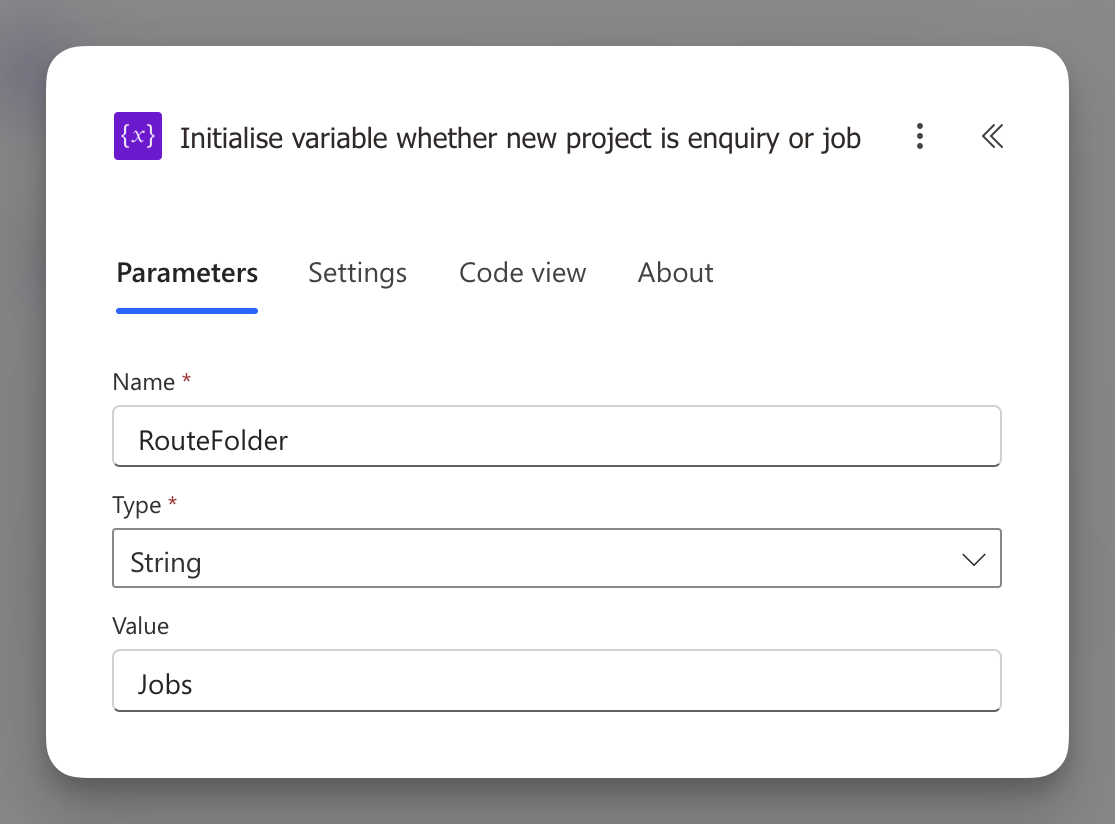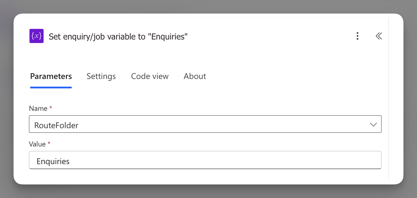 RouteFolderwill always equal either Jobs or Enquiries, ready for use in Step 7 when you create folders.