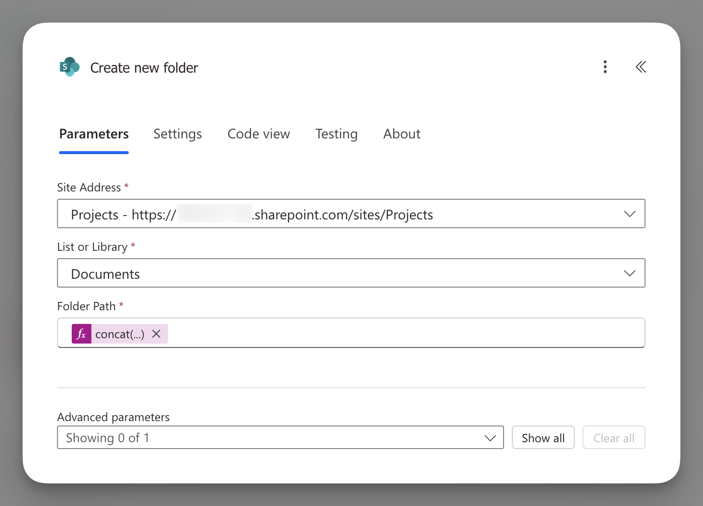 Add a Create new folder (SharePoint) action.