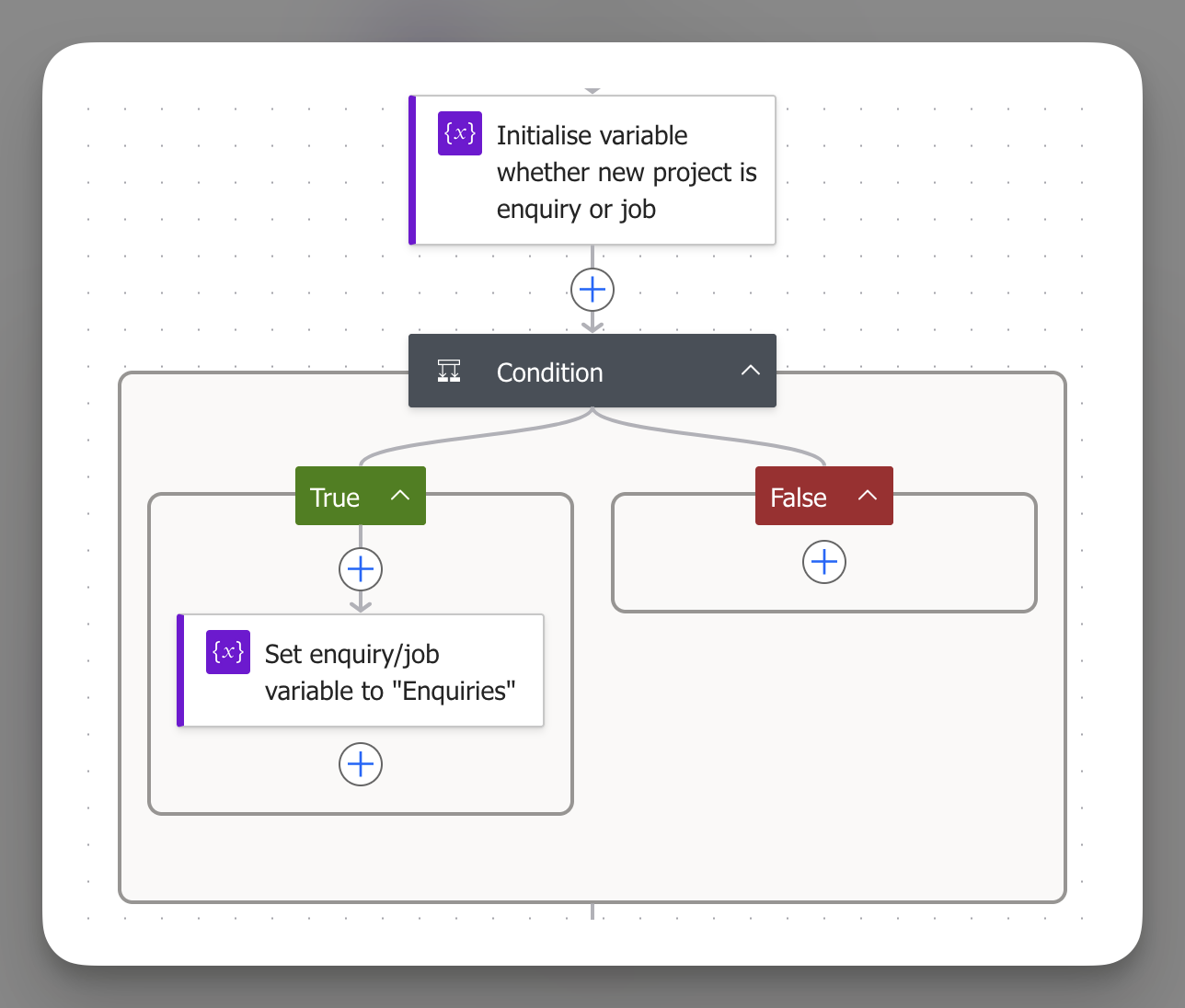 Here’s what a completed flow looks like from start to finish, including the enquiry/job routing: