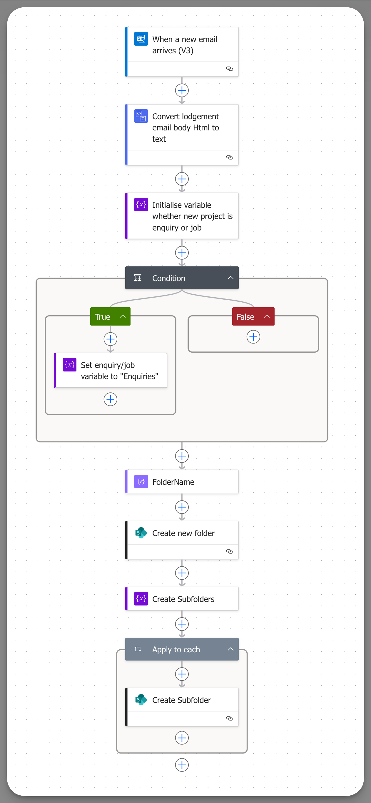This tells Power Automate to use your cleaned-up folder name (Step 6), and if needed, place it inside either the Jobs or Enquiries subfolder (from Step 5).