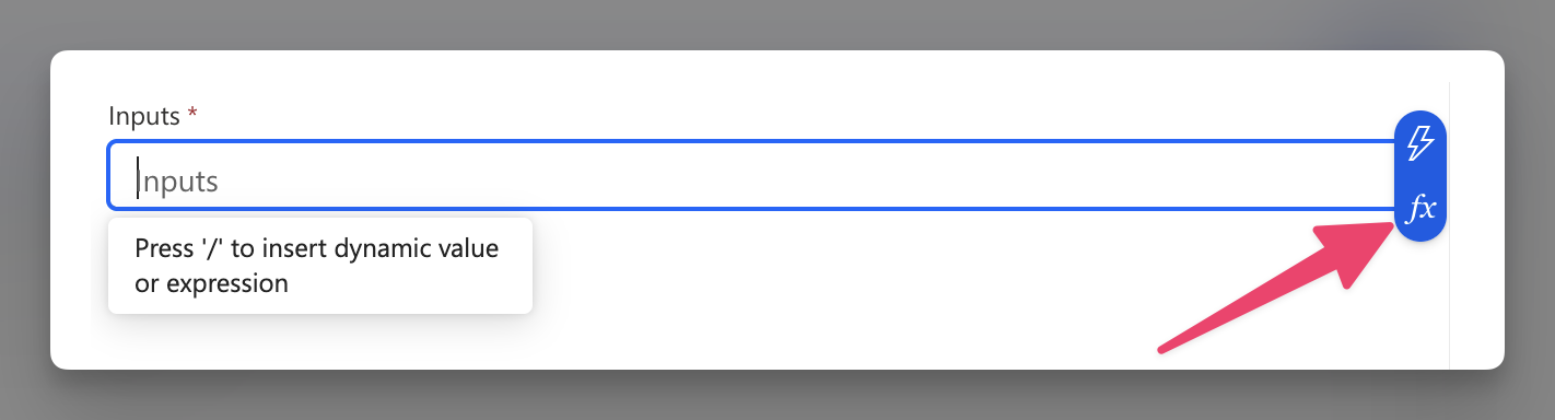 Click into the Inputs text box, and then click the blue Insert expression icon that appears to the right of the text box.