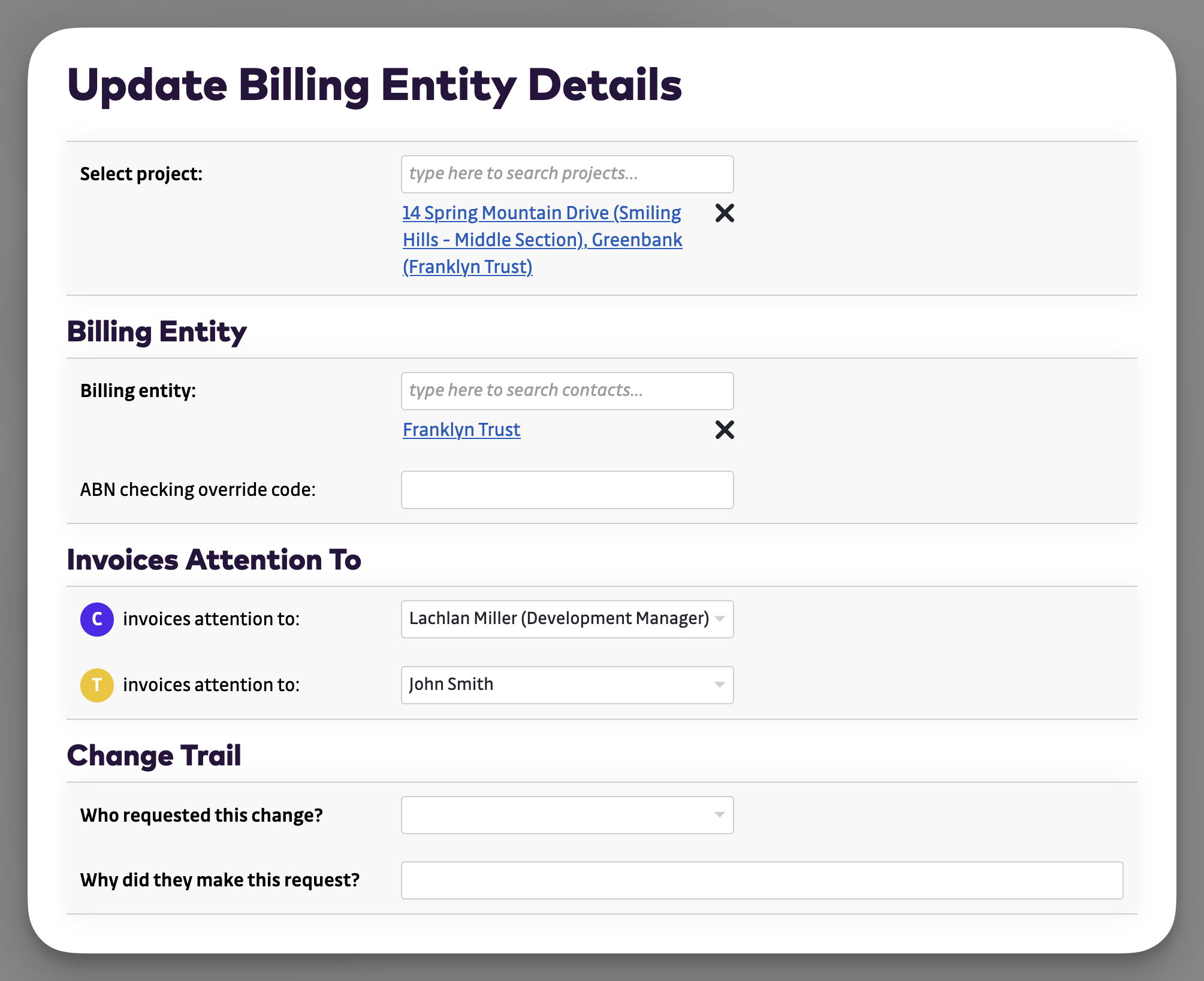 This enables you to invoice a trust or subsidiary while still addressing the invoice to someone at the parent organisation.