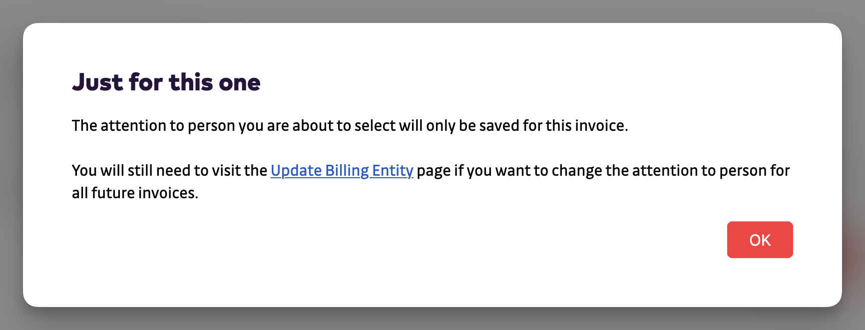 The dropdown will be pre-filled with the job’s default “Invoices Attention To” person.